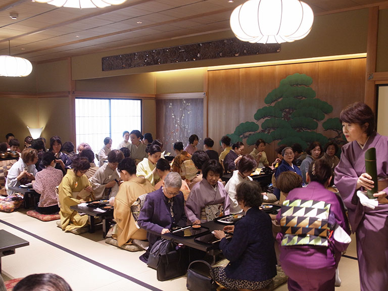 朝10時から夕方16時頃までの間、高麗橋𠮷兆には400名を超える華やかな和服姿のお客様などが来店され、各お部屋でお食事を楽しんでいただきました。真新しい中にもかつての趣を残す部屋でのお食事に、とても感慨深げなお客様の表情がとても印象的でした。